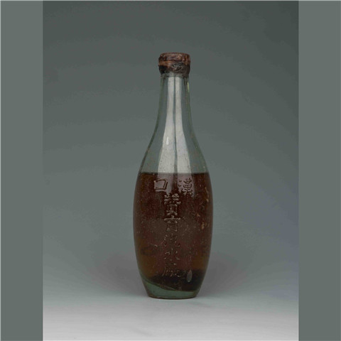 这是一瓶玻璃瓶原装汽水,它的外形是不是很像现在的玻璃瓶可乐?就连包装方式也与可乐相似:铁皮瓶盖,盖周围以蜡密封,瓶身有“汉口赞育汽水厂”字样及商标图案,图案周围是英文字样。瓶内液体已呈黄褐色。“汉口赞育汽水厂”是武汉冷饮行业史中第一家采用机器制作汽水的冷饮厂,也是抗日战争胜利前武汉及至湖北地区最大的两家机制汽水厂之一,厂址在现在汉口车站路附近。该厂前身是法国商人纳加利于1911年在汉口法租界海寿街(现车站路附近)开办的一家小规模的、人工生产碳酸汽水的车间。1918年,这家人工生产汽水车间被英商开办的“赞育药房”收购,取名“汉口赞育汽水厂”,并加以扩建,重新添置机器设备,变手工制作为机器制作,成为汉口第一家机器制作汽水的冷饮厂。